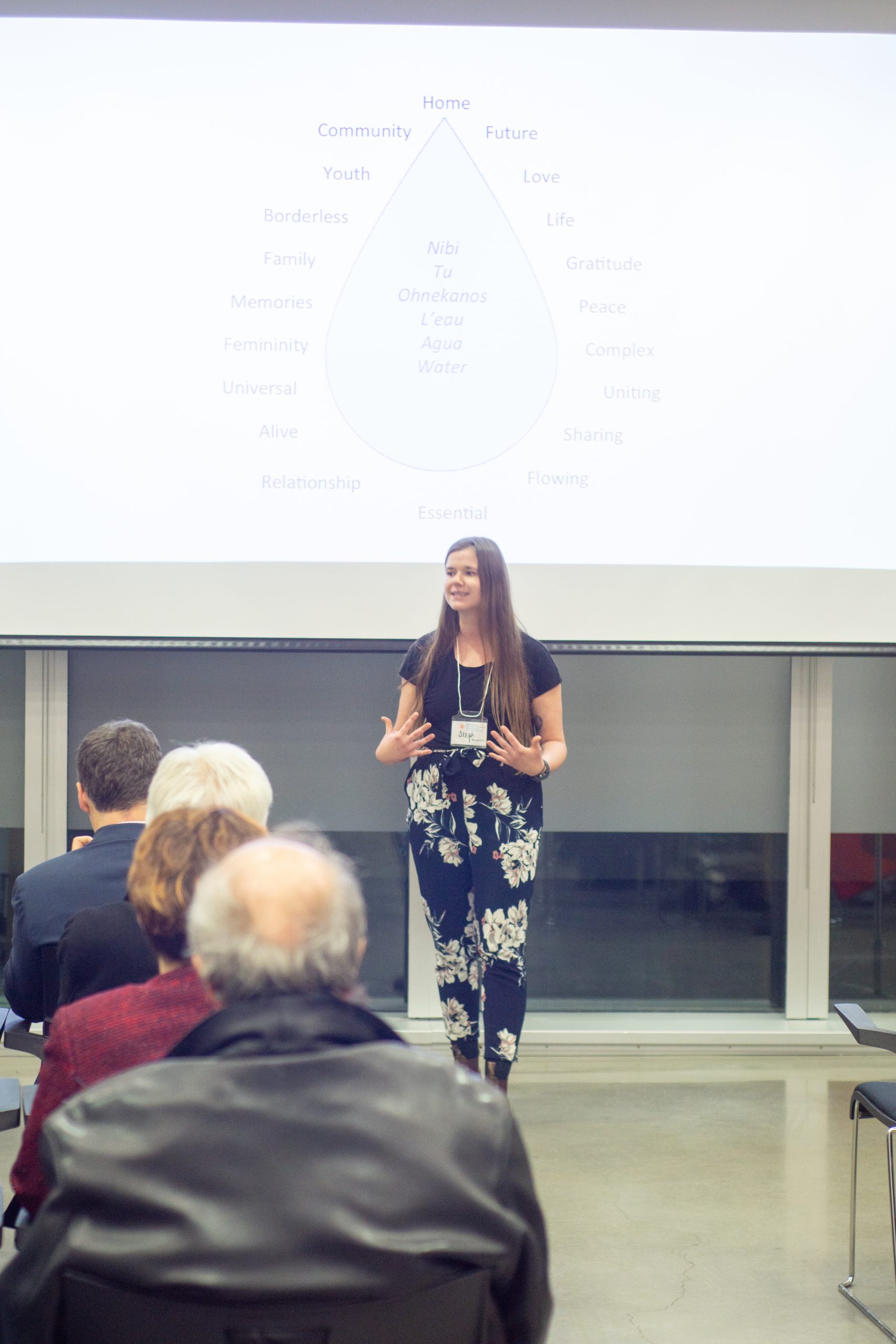 By her contagious energy, Stephanie Woodworth, Canadian Representative at the World Youth Parliament for Water, encouraged the guests to reconnect with the water inside of them by miming what it represents to us in life, be it love, peace, energy or home.