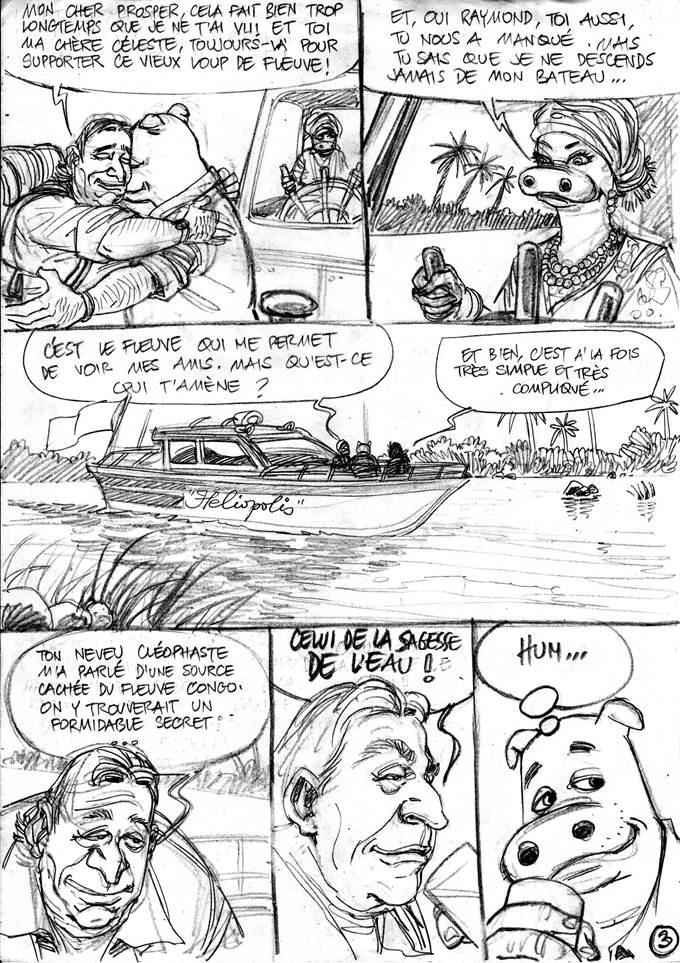 C’est partant de ce double constat qu’est née l’idée de ce projet de présenter sous forme d’une bande dessinée les réalisations de Raymond Jost et d’en profiter pour lui faire vivre, sous le crayon du dessinateur Congolais Jason Kibiswa, de nouvelles aventures cocasses et signifiantes avec son ami Prosper Hippopotamus.