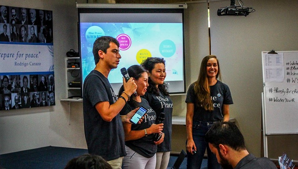 Vendredi le 28 septembre, les leaders du Parlement mondial de la jeunesse pour l’eau – Asie centrale, étudiant à l’Université de la paix (Costa Rica), ont tenu un événement #BluePeace. La présentation et l’atelier furent tous deux un succès! Ils ont eu environ 40 participants (des étudiants de 30 pays) dont les idées et l’enthousiasme furent très inspirants!
