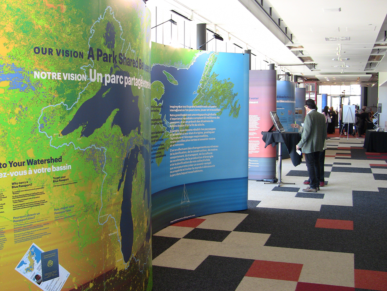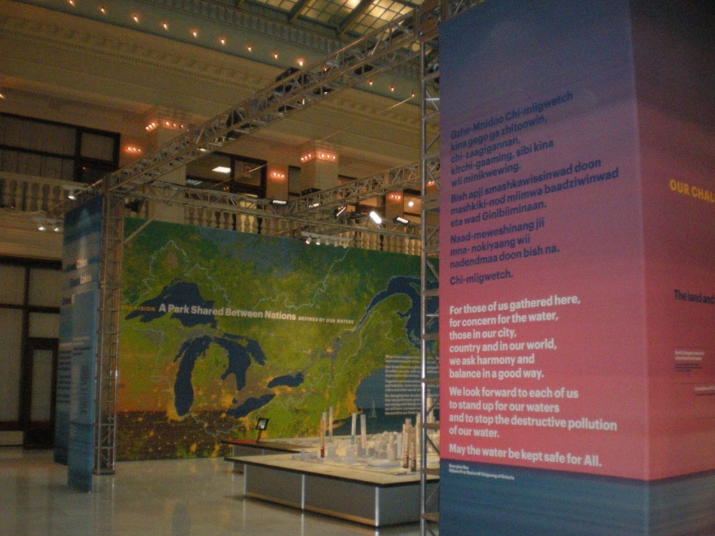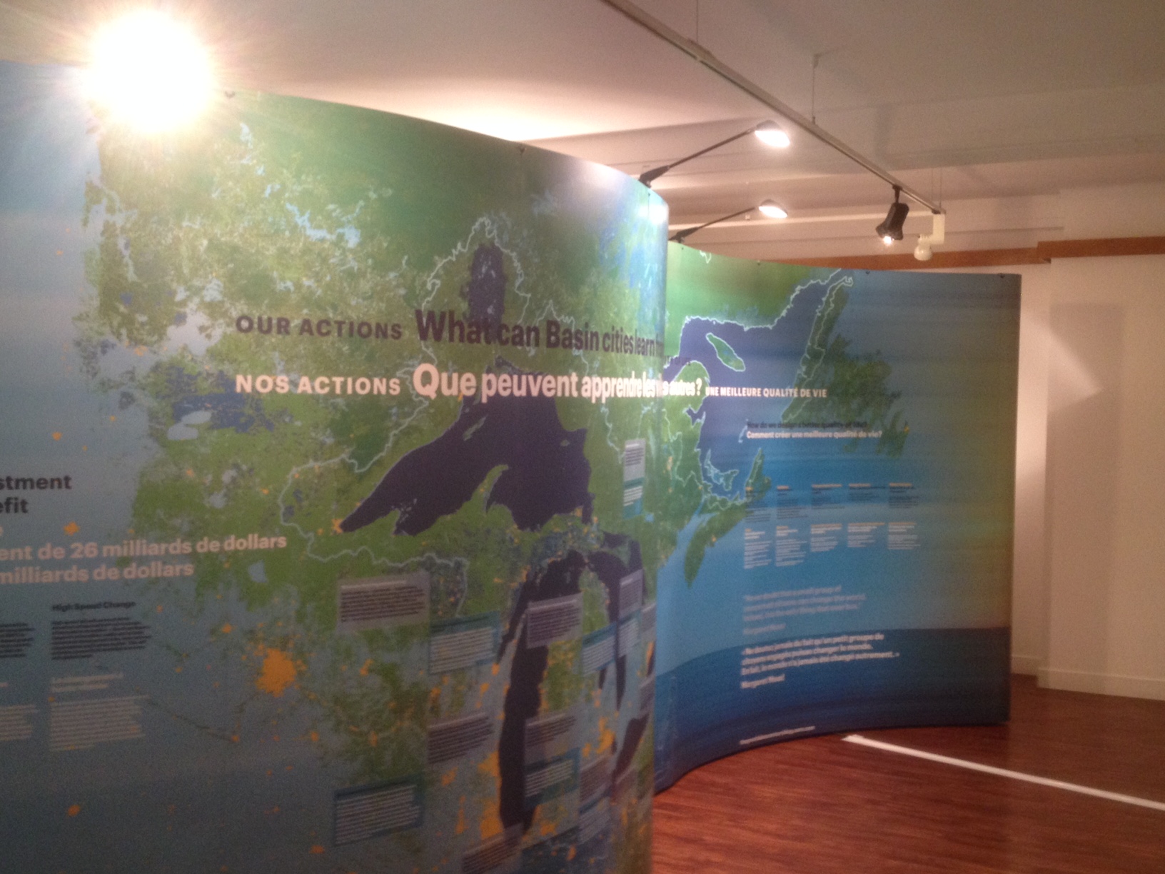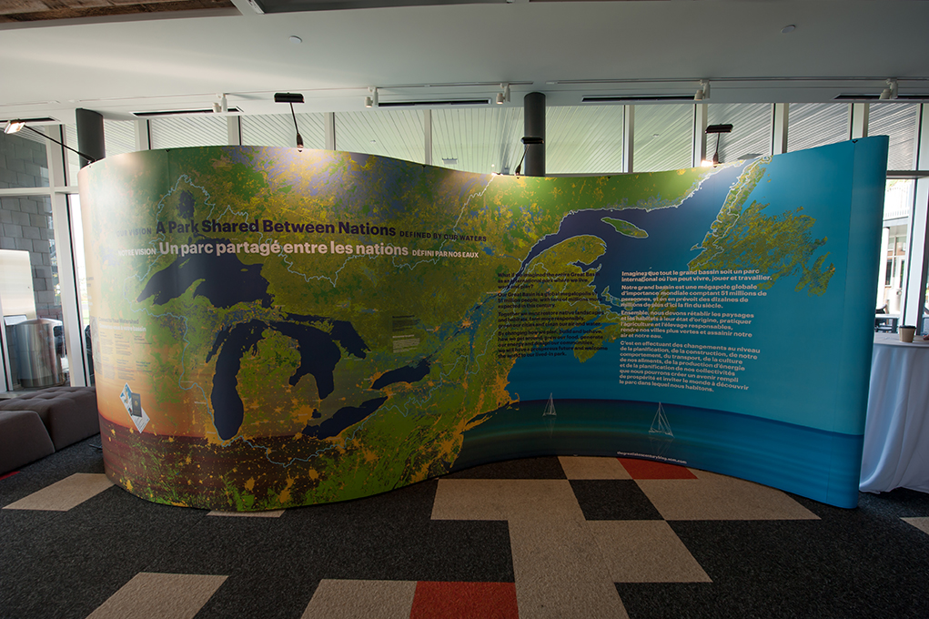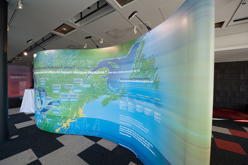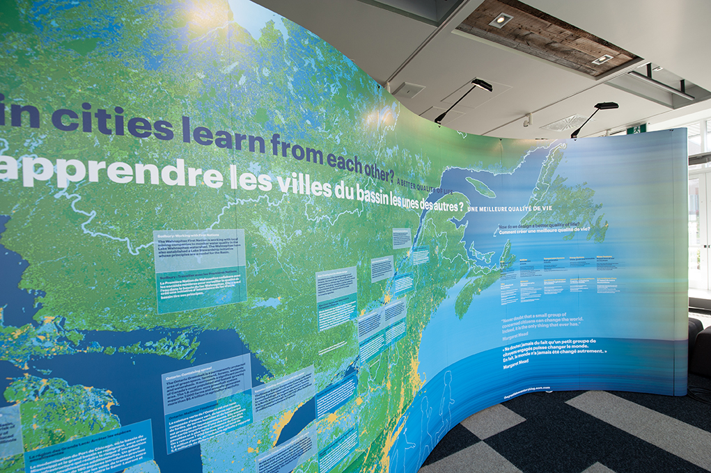 À partir de septembre 2014, une exposition itinérante intitulée Grandes Villes, Grands Lacs, Grand Bassin a été produite pour partager la vision de l’ensemble de bassin dans un contexte d’adaptation aux changements climatiques.