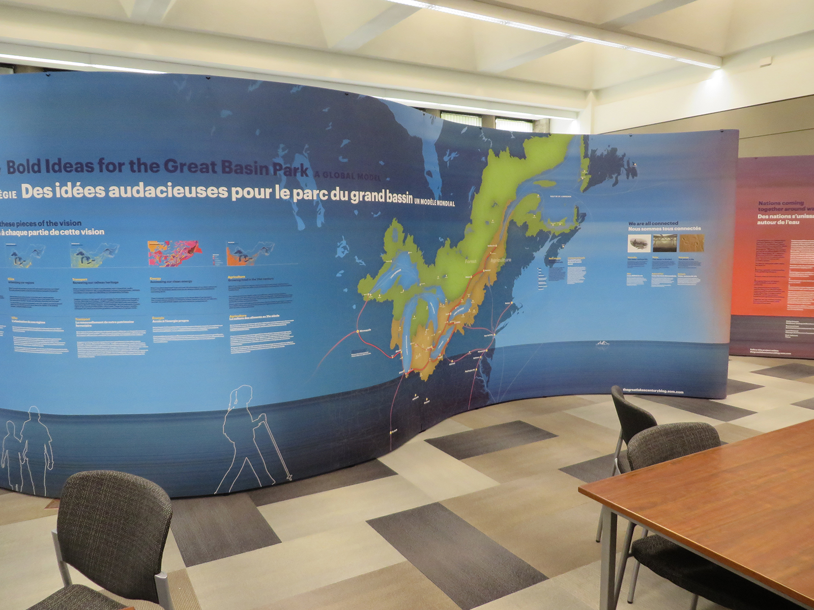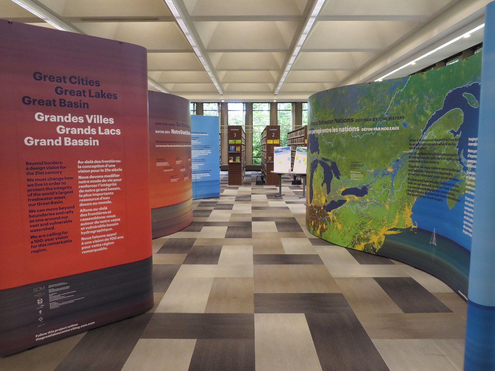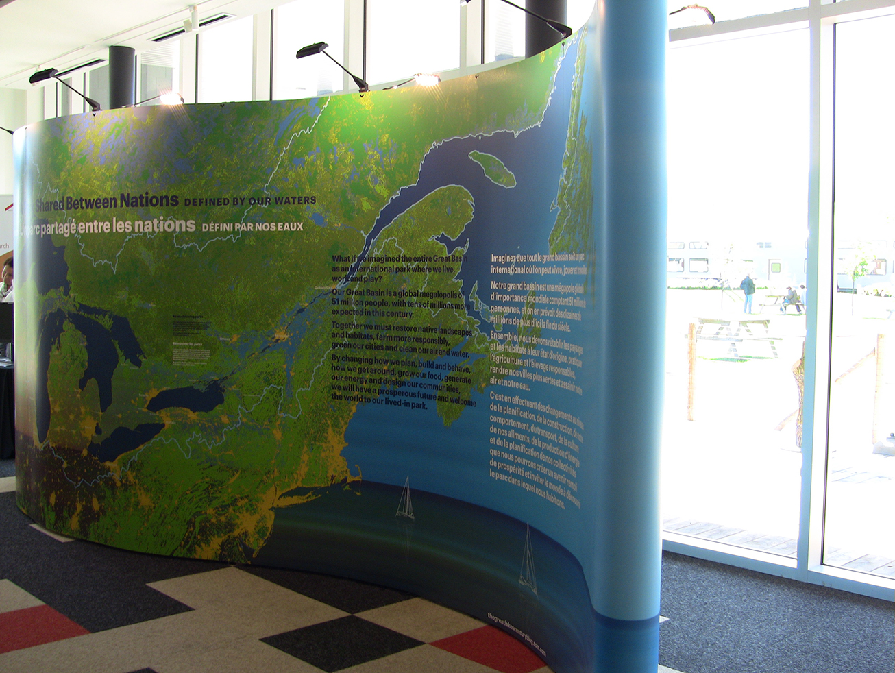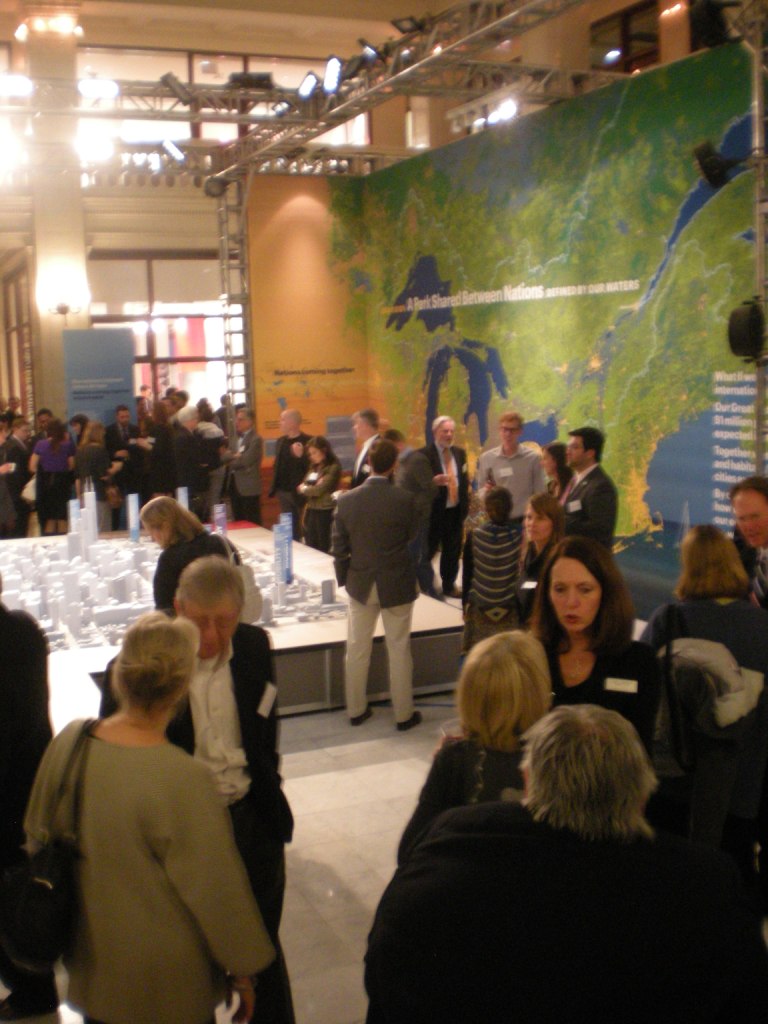 À partir de septembre 2014, une exposition itinérante intitulée Grandes Villes, Grands Lacs, Grand Bassin a été produite pour partager la vision de l’ensemble de bassin dans un contexte d’adaptation aux changements climatiques.