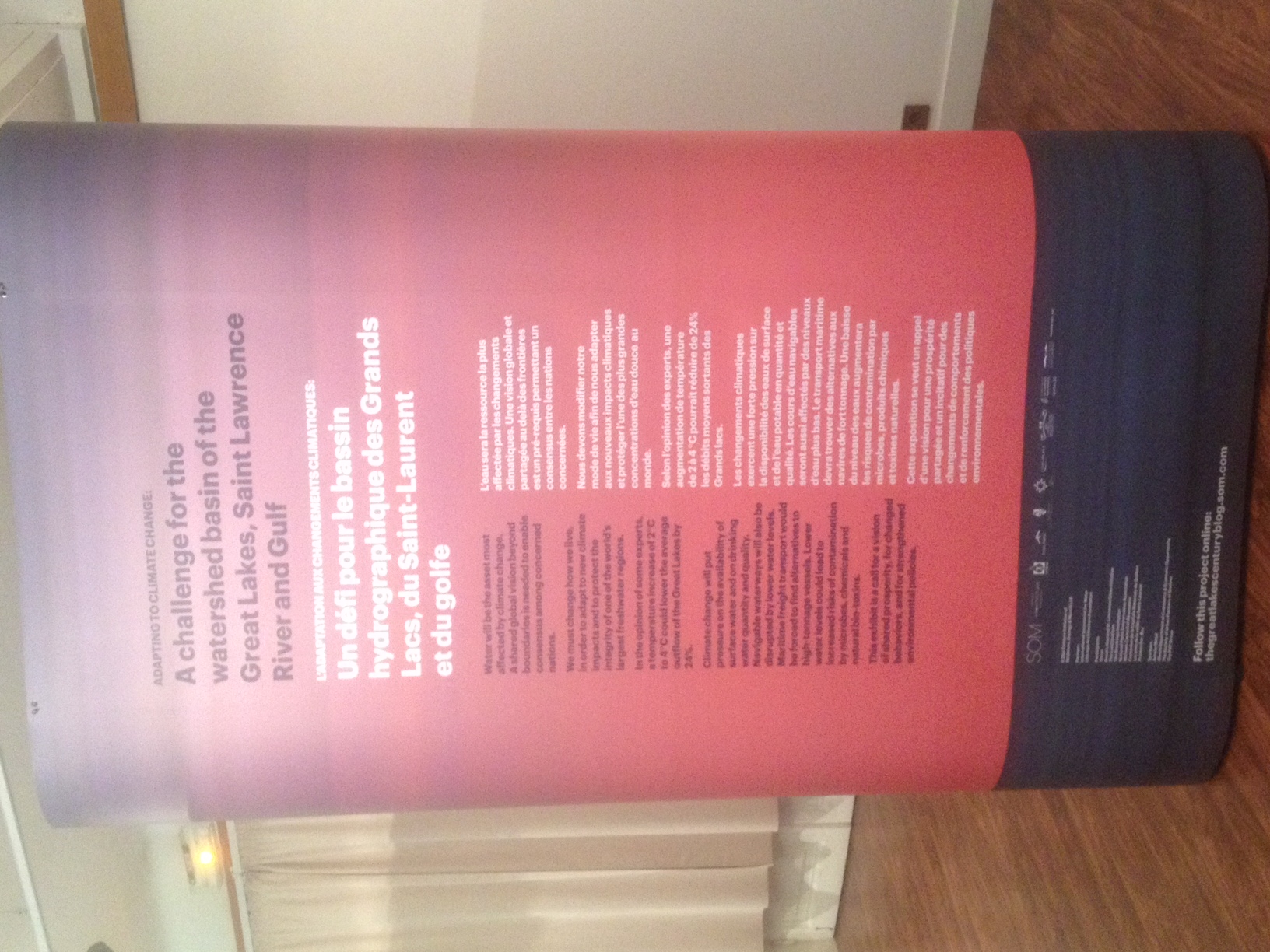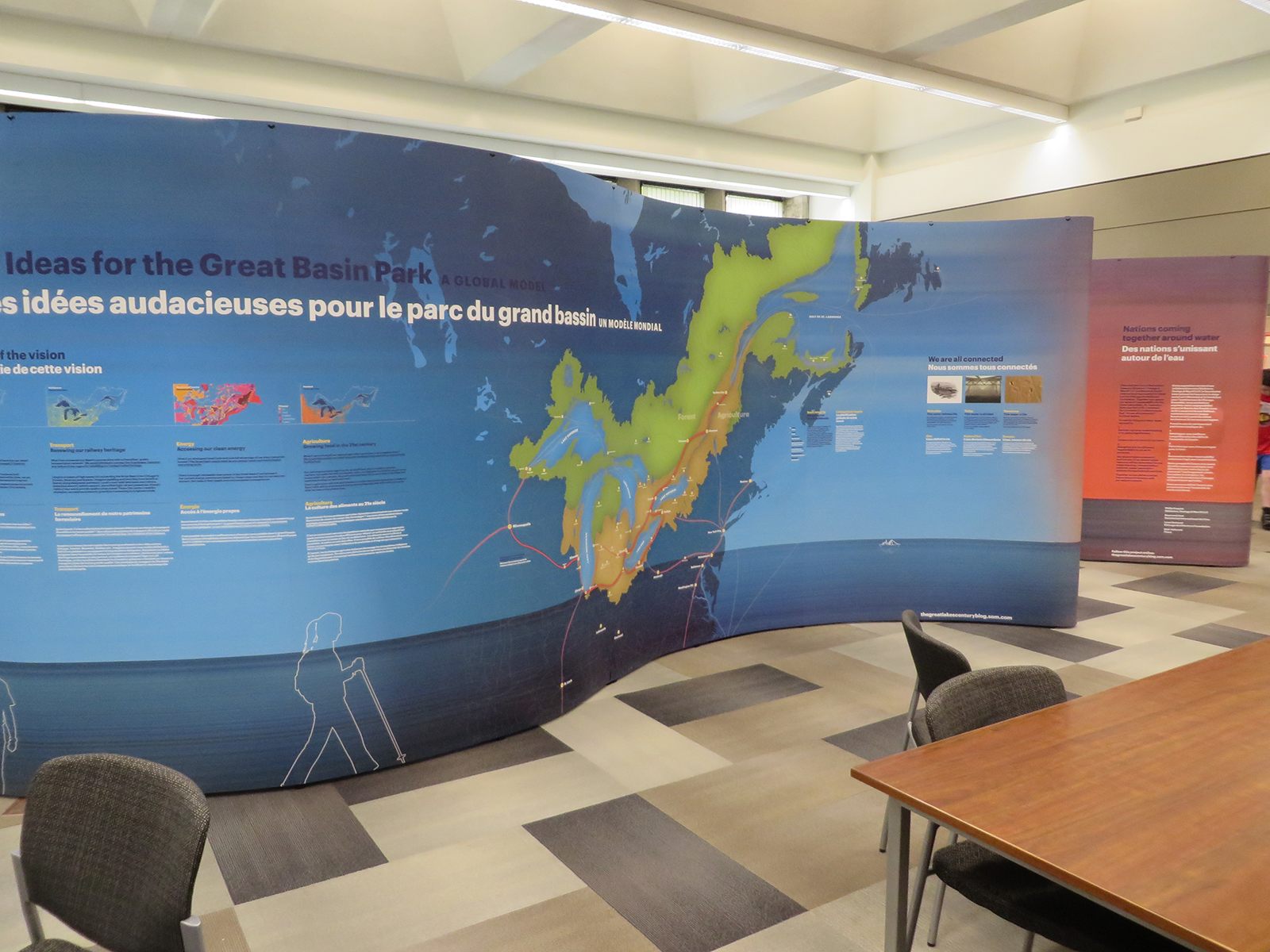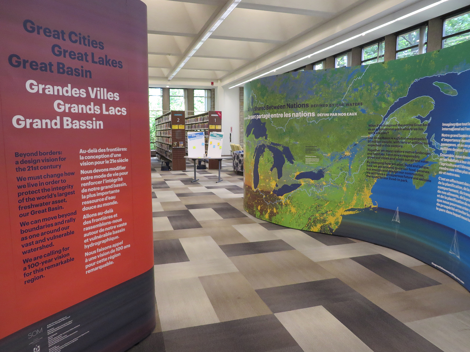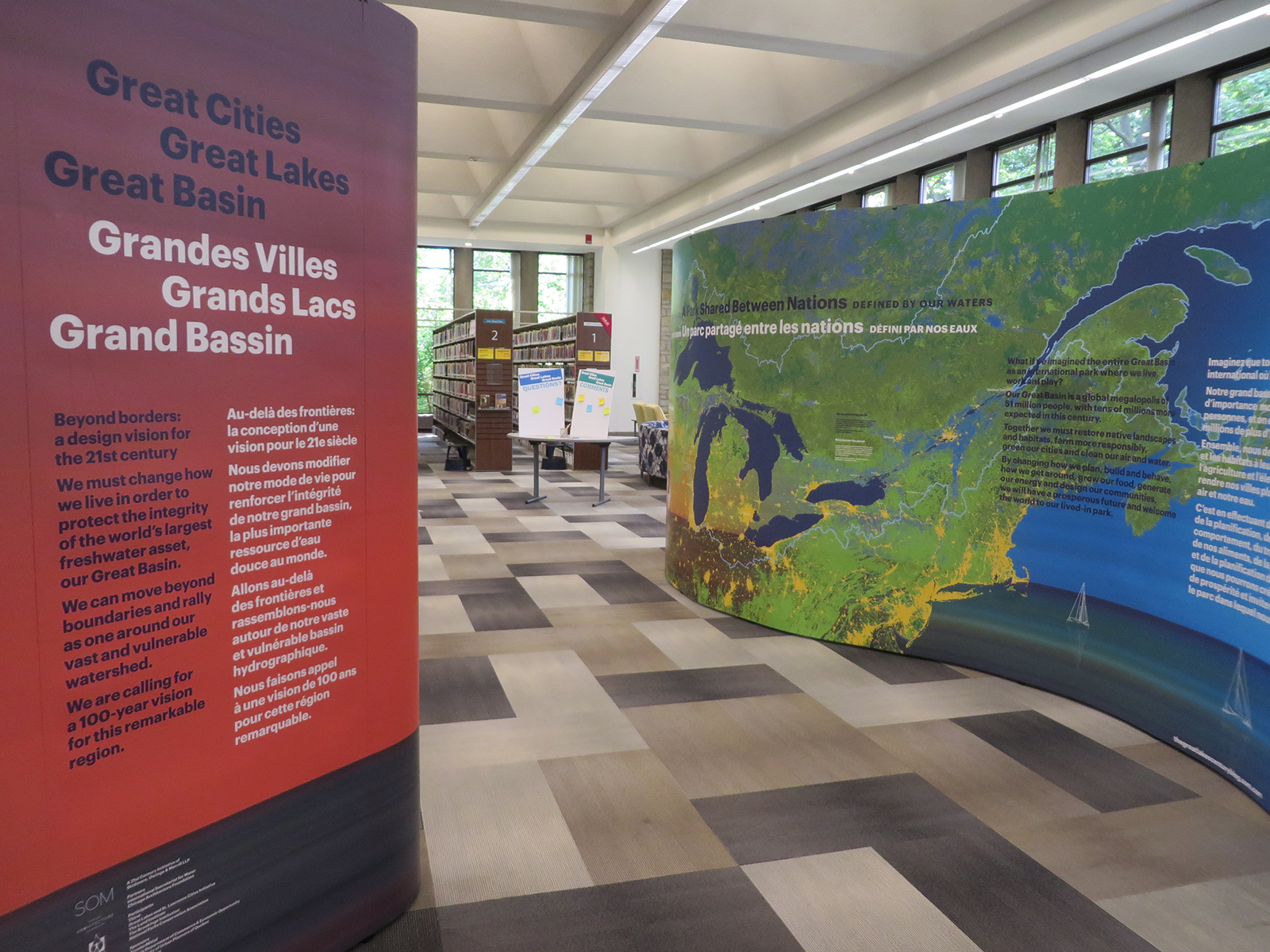 À partir de septembre 2014, une exposition itinérante intitulée Grandes Villes, Grands Lacs, Grand Bassin a été produite pour partager la vision de l’ensemble de bassin dans un contexte d’adaptation aux changements climatiques.