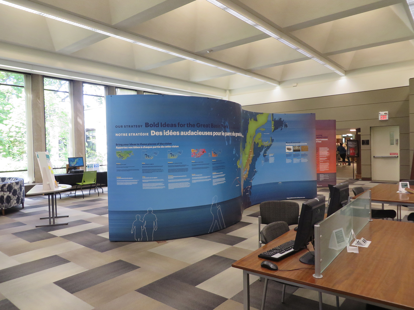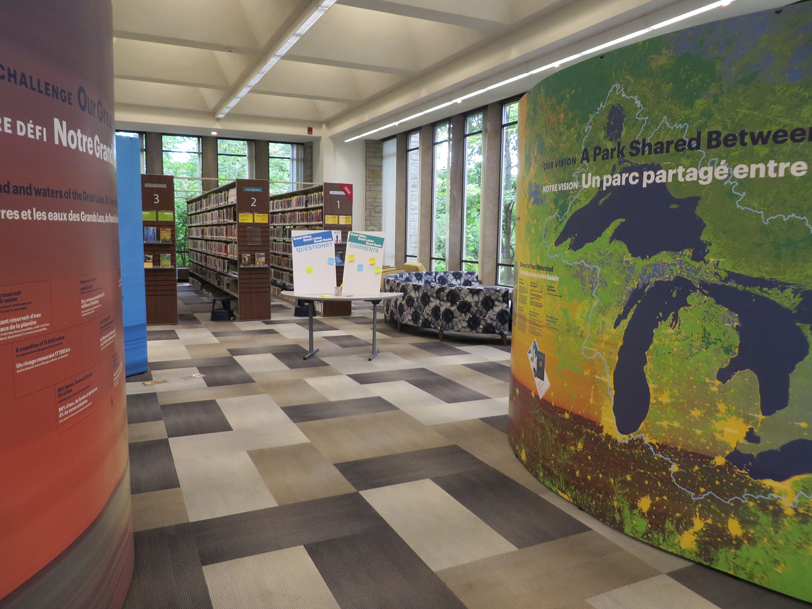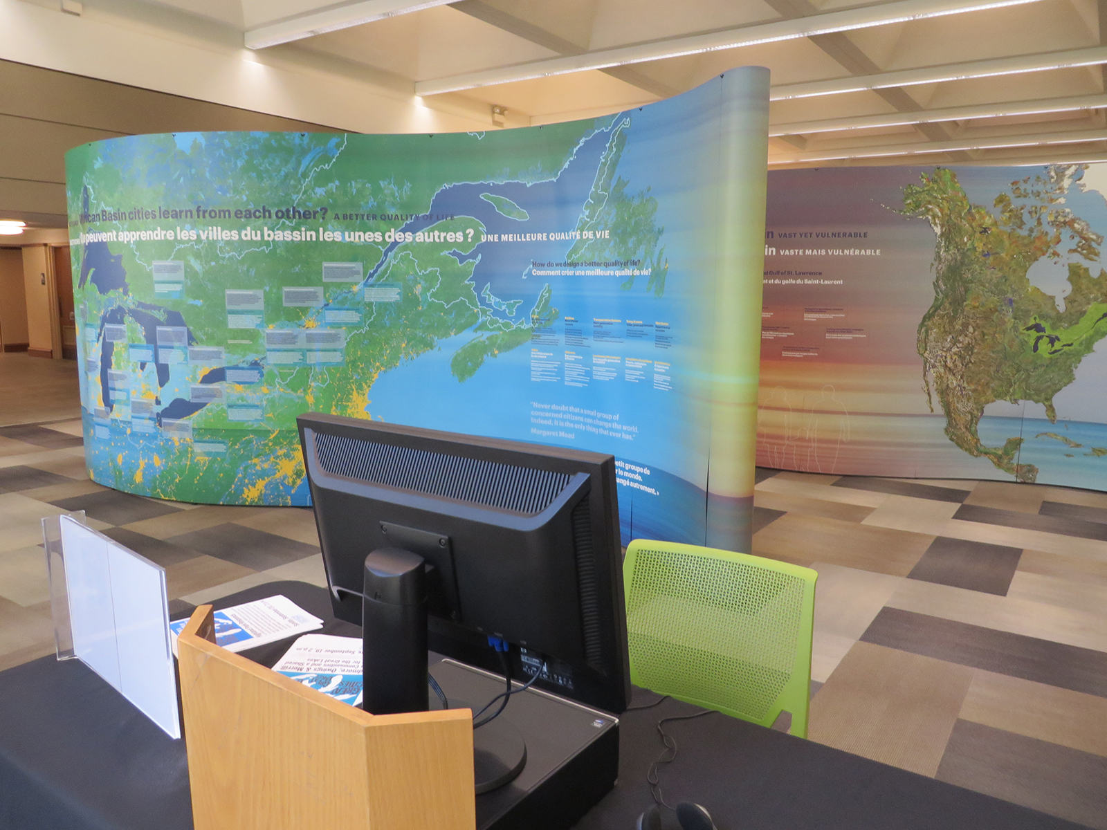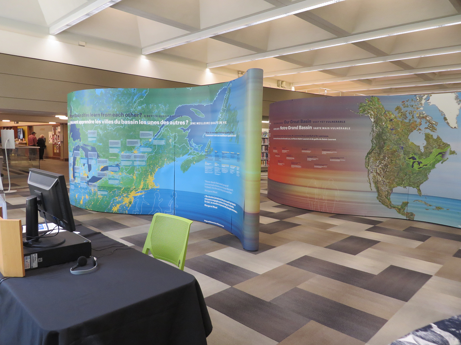 À partir de septembre 2014, une exposition itinérante intitulée Grandes Villes, Grands Lacs, Grand Bassin a été produite pour partager la vision de l’ensemble de bassin dans un contexte d’adaptation aux changements climatiques.